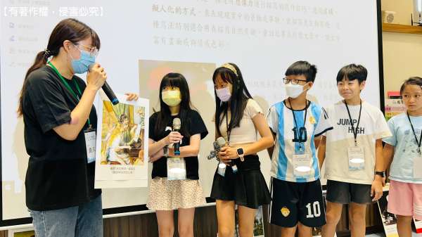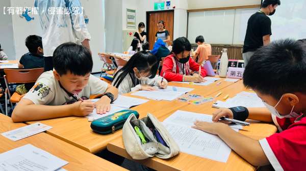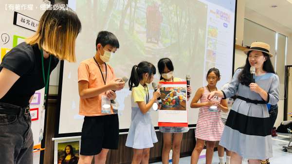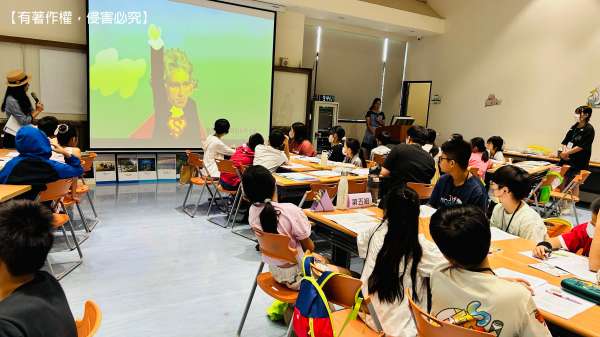 活動一開始,學員們在老師與助教的引導下,聆聽不同風格的音樂,有激昂澎湃的《命運交響曲》、溫柔細膩的《愛的禮讚》、如春風吹拂般的《鄰家的龍貓》。孩子們用形容詞與比喻,將節奏與旋律轉化為文字畫面,就會發現每首音樂都像是一面「映照內心」的鏡子。 接著,老師帶領孩子走進世界名畫,細細感受色彩光影與人物線條,並運用「感官摹寫法」描繪感受。除了常見的視覺、聽覺、嗅覺、味覺、觸覺,老師更特別介紹「移覺」,將不同感官的感受互相借用,例如「有顏色的聲音」、「有香味的顏色」,例如「微風的聲音,柔軟的就像媽媽溫柔地親吻我的額頭」。這種交錯描寫,讓文字更具立體感與感染力。