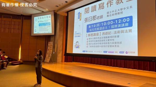 本會與臺中市立圖書館西屯及溪西分館共同舉辦「2025閱讀寫作教室系列講座」,此場張日郡老師《西遊記》-法術與法寶 講座一樣報名額滿、座無虛席,足以見得大家對於西遊記這部經典文學充滿了興趣。在這個珍貴的周末時光,大小朋友們都帶著愉悅且充滿好奇心的心情前來參加,這回張老師又將為我們揭開《西遊記》哪些引人入勝的面向呢?
